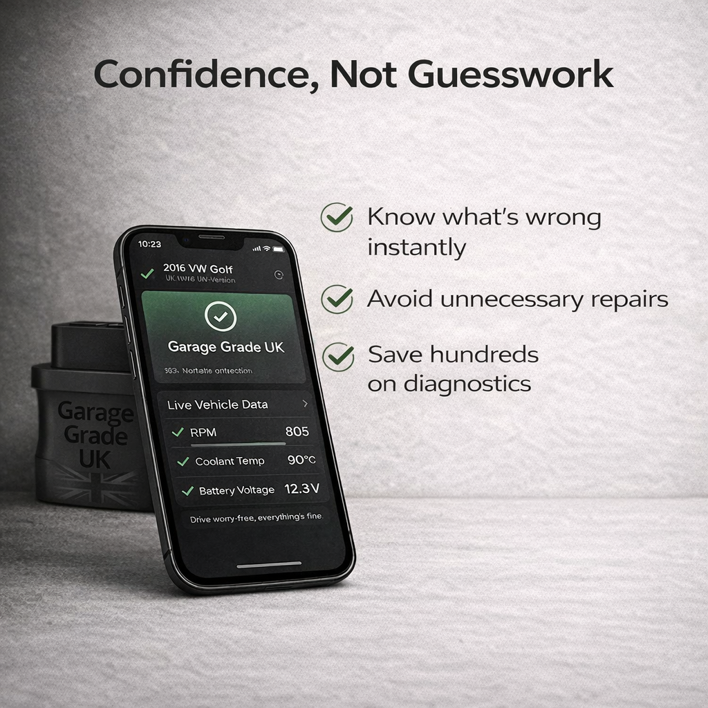 Garage Grade Scanner doesn’t just read fault codes — it translates your car’s data into clear, plain-English explanations you can actually use. No guesswork. No intimidation. Just the same level of insight professionals rely on, now in your hands.