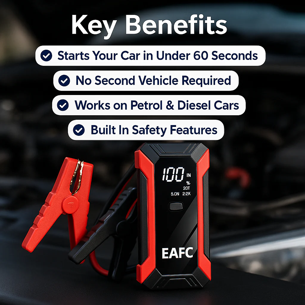 No mechanical skills required. No confusing cables. Just clip it on and press the button and your car starts in seconds. If you can use a phone charger, you can use this