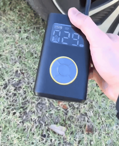 The inflator features dual power options - if the battery runs low, simply plug it into your car's 12V socket to continue inflating.